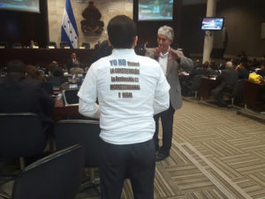 Reyes, quien llegó con una camiseta donde rechaza la reelección, explicó que esa es una iniciativa personal porque “yo no voy a participar en el proceso de reglamentación de la reelección porque el Partido Nacional ya tiene los votos para ese proceso y porque esa reelección y esa votación es ilegal e inconstitucional”.