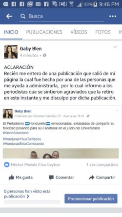 A continuación el mensaje aclaratorio de Gabriela Blen: