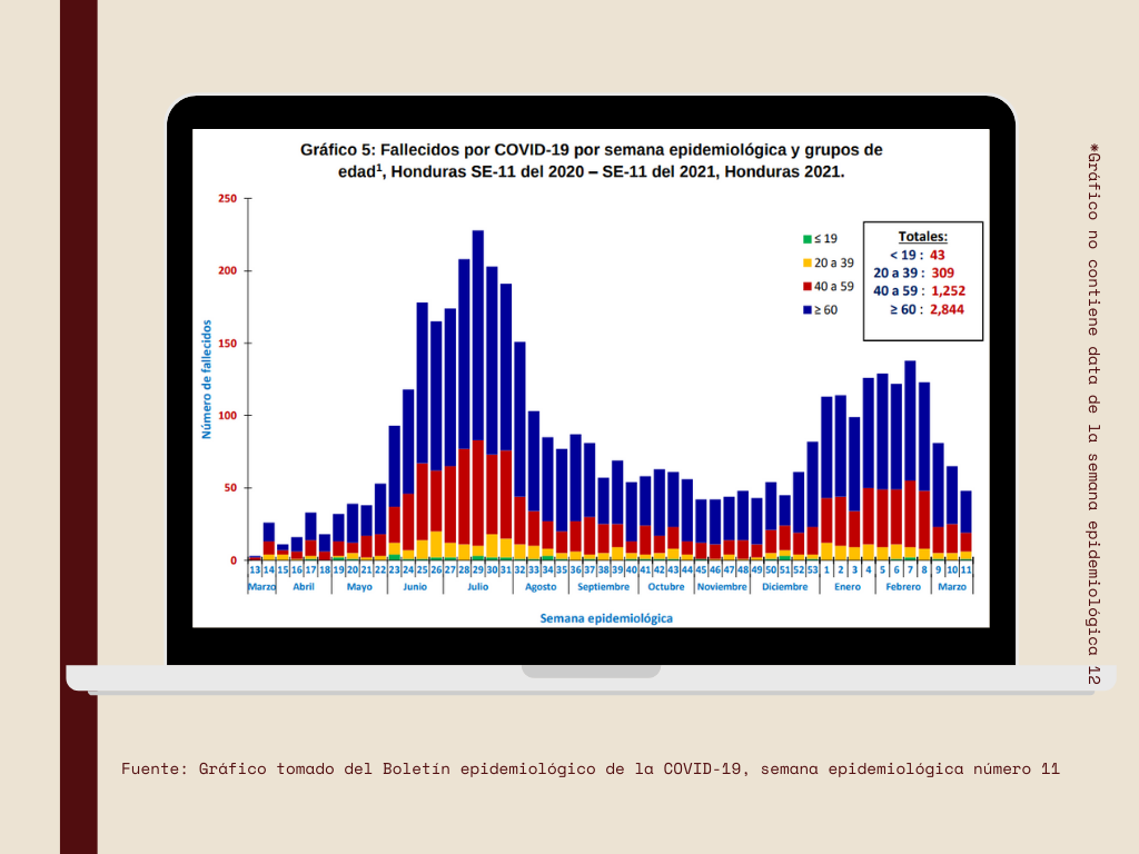 En el mismo párrafo indicó: «desde la SE N°10 y SE N°11 de nuevo se observa el patrón del incremento, que porcentualmente representa un mínimo de 1% a 2% de manera sostenida cada semana; lo que se ha convertido en una alerta importante a la quehay que mantener en vigilancia cercana porque además el número de defunciones