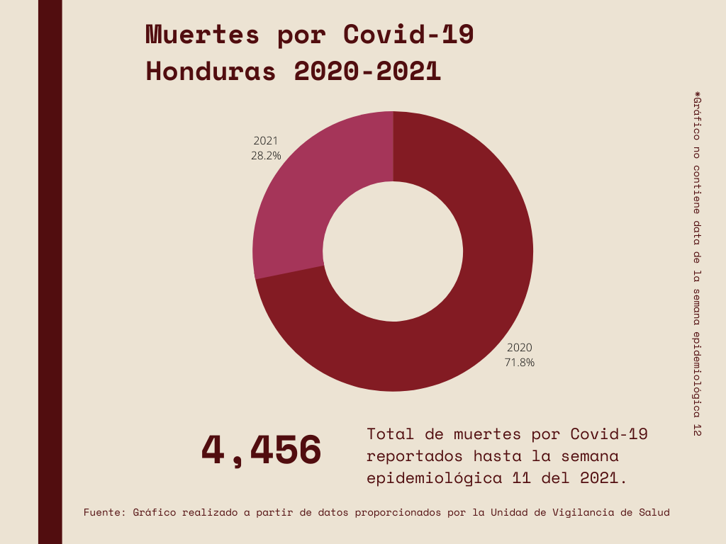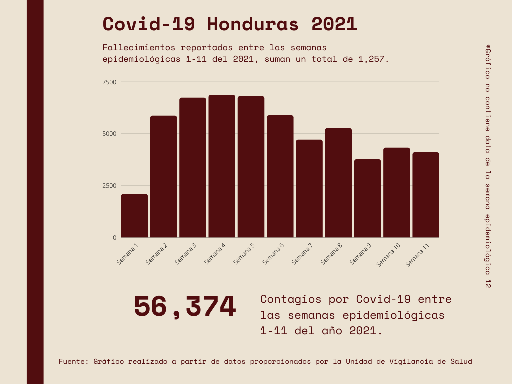 El 22 de marzo, la Unidad de Vigilancia de Salud publicó su «Boletín epidemiológico de la COVID-19, semana epidemiológica número 11» en el que apuntó que hay un «patrón ascendente» de defunciones que comenzó en la semana epidemiológica (SE) 1, «con promedios en el número de defunciones por semana epidemiológica de 125 a 140 defunciones, registros que solo habíamos tenido en el año 2020 en los meses de junio y julio».