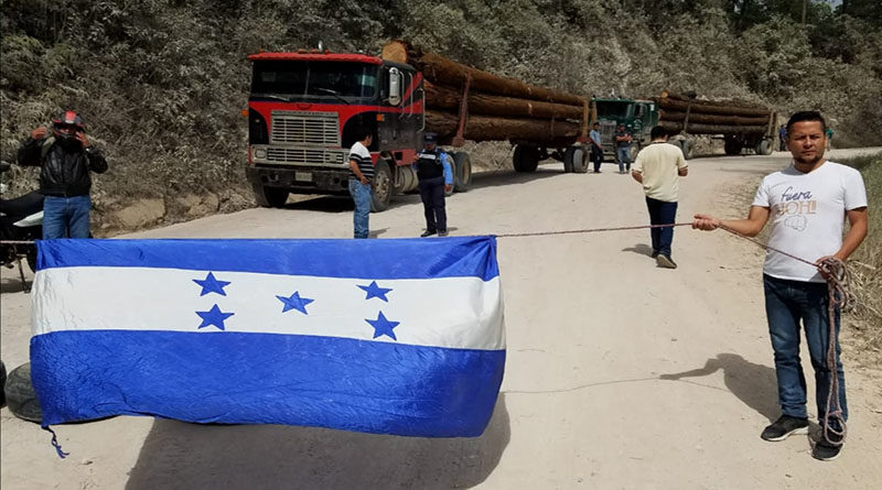 La población, integrada por líderes comunitarios e indígenas, se apostó en la carretera para impedir que los camiones salieran de la zona con la madera que estaba siendo extraída de la comunidad de El Borbollón.