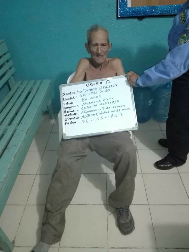 Tegucigalpa.- La policía del municipio de Nacaome en el departamento de Valle al sur de Honduras, capturó este lunes al octogenario Saturnino Anariva, quien es acusado de allanamiento de morada.
