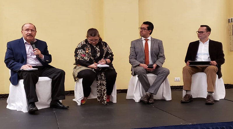 El evento incluyó un conversatorio donde participaron Hugo Noé Pino expresidente del Banco Central, Suyapa Martínez de CEM-H, Jonathan Mencos director de Icefi y Wilmer Vásquez director de Coiproden