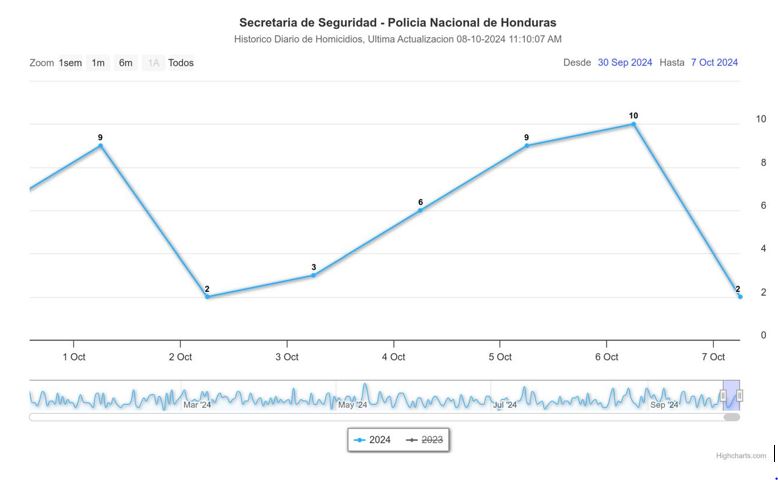 Estos homicidios de la primera semana de octubre no son los únicos en estas zonas, sino que, de acuerdo análisis de datos elaborados por Criterio.hn, el 60% de los asesinatos registrados en Honduras en 2024 ocurrieron en departamentos bajo intervención militar y policial, siendo Cortés y Francisco Morazán los más afectados. San Pedro Sula y Tegucigalpa, específicamente, destacan no solo por la cantidad de homicidios, sino también por la incapacidad de las autoridades para detener la violencia, a pesar de las medidas adoptadas.