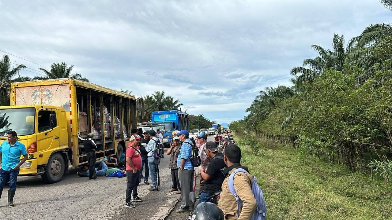 Tegucigalpa, Honduras. – Los campesinos de la Cooperativa Agraria Camarones tomaron la carretera cerca de la planta extractora de la empresa Dinant en Tocoa, Colón, como medida de protesta tras ser desalojados de sus tierras.