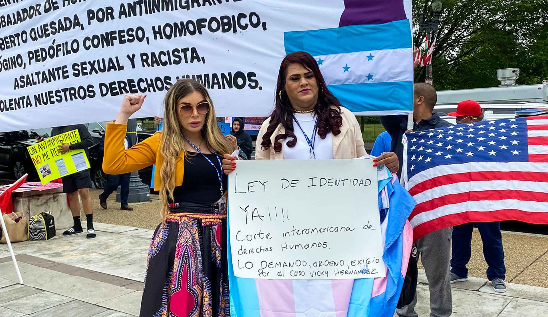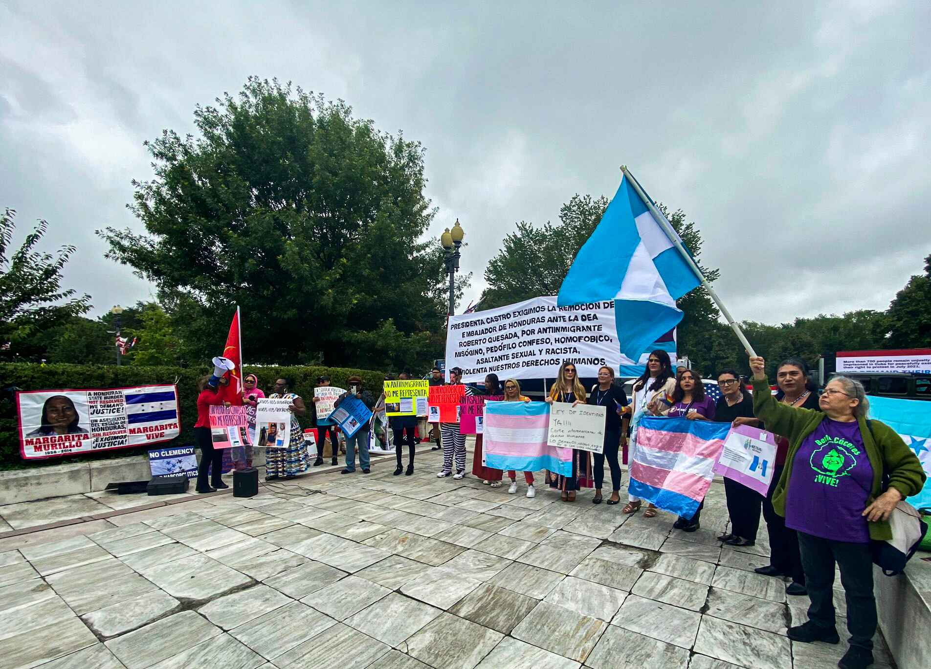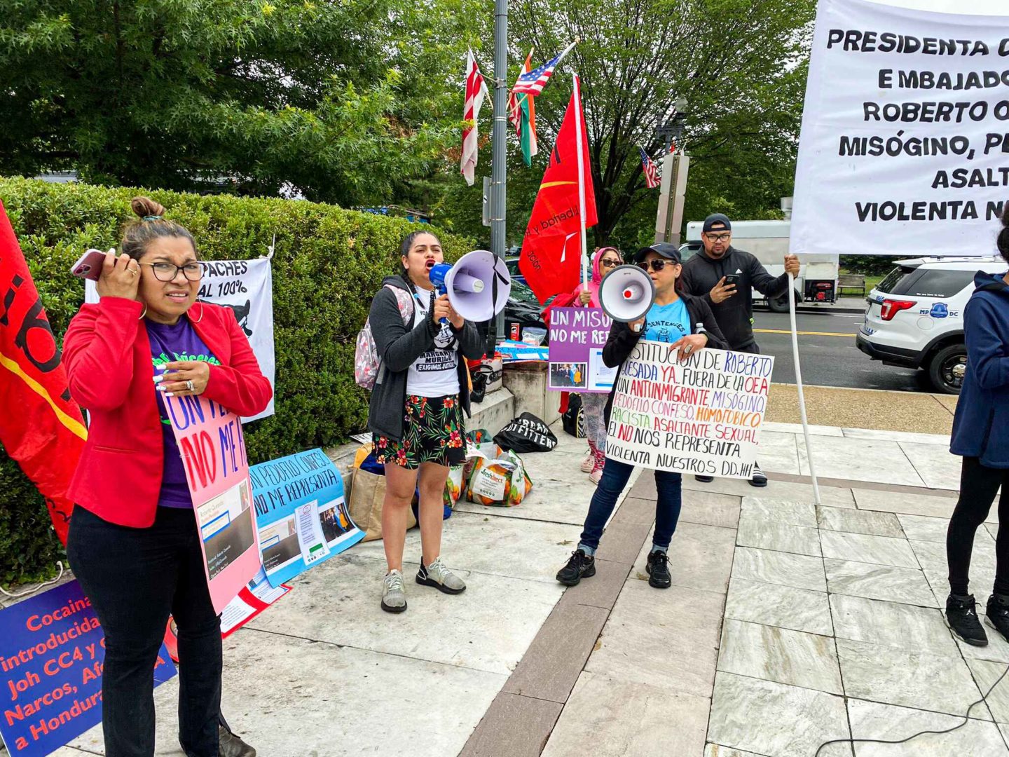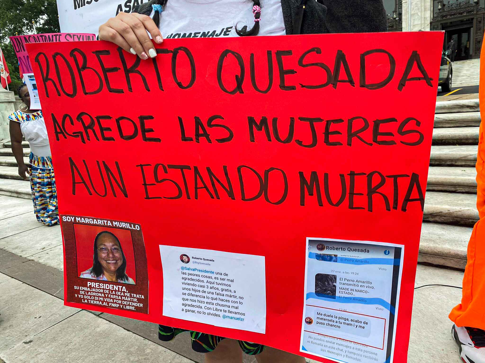 Un grupo de hondureños se dio cita, el jueves 22 de junio, frente a la sede de la OEA en Washington D.C. para exigir a Xiomara Castro la destitución del diplomático. Los asistentes al plantón mostraron eufóricamente su descontento en pancartas que mencionan las acciones cometidas por Quesada. También asistieron personas de la comunidad garífuna pidiendo respuesta al gobierno por la desaparición forzada, en 2020, de los cuatro jóvenes garífunas de la comunidad de el Triunfo de la Cruz, municipio de Tela, en el departamento de Atlántida. En la protesta participaron también representantes de la comunidad LGBTIQ+, quienes exigieron a la presidenta Xiomara Castro el cumplimiento de sus promesas en torno a sus derechos.