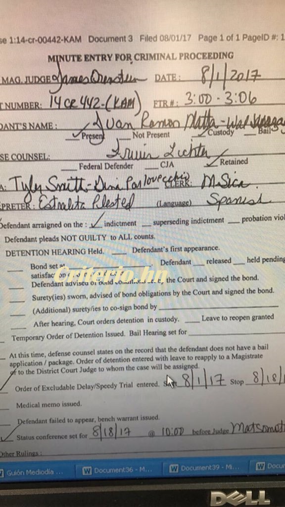 Tegucigalpa.- De acuerdo a un documento de la justicia de los estados Unidos, el hijo de Ramón Matta Ballesteros, se entregó el pasado 1 de agosto luego de negociar con la justicia de ese país.