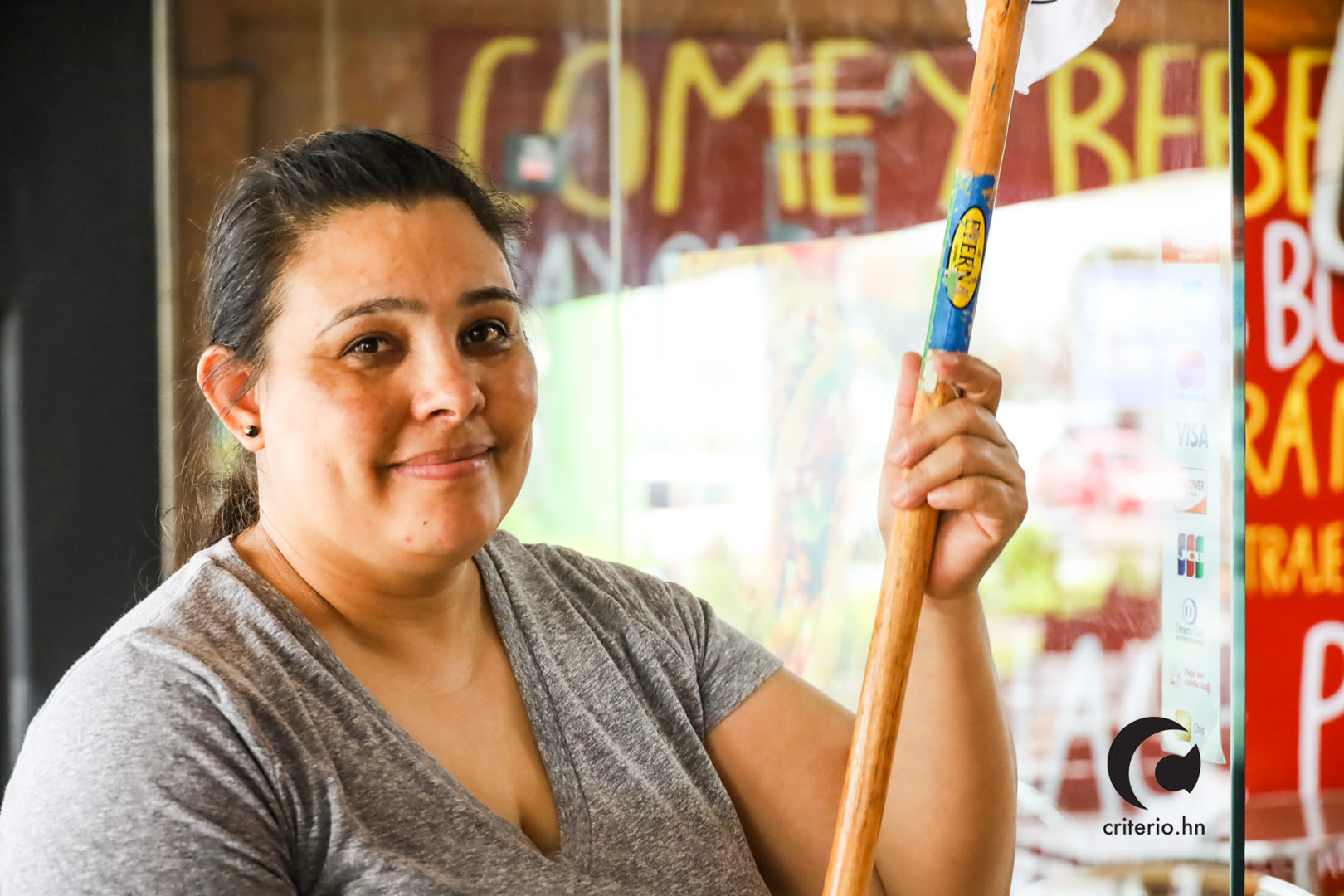 Mientras limpiaba la ventana de la tiende, donde labora, Lesly habló con Criterio.hn sobre la necesidad que impera en el país en virtud de los altos costos de la canasta básica que agobian a la mayoría de los hondureños que día a día luchan por sobrevivir en un país donde más del 70% de su población vive en condiciones de pobreza.