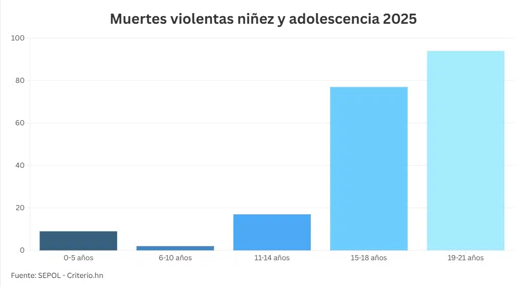 Una de las problemáticas que afecta mayormente a este sector vulnerable de la población, son las muertes violentas. De acuerdo con datos del Sistema Estadístico Policial en Línea (SEPOL), del 1 de enero al 16 de agosto de 2025 se han registrado 199 homicidios a nivel nacional, que en su mayoría corresponden a víctimas en edades de 0 a 21 años.