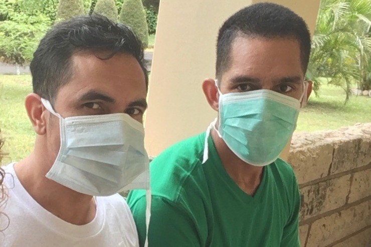 Foto: Edwin (izquierda) y Raúl (derecha) fueron llevados al hospital en Tegucigalpa; están a la espera de las pruebas de tuberculosis fuera de las instalaciones. Ambos han perdido una cantidad considerable de peso y sufren estrés emocional, psicológico y físico como resultado de las condiciones inhumanas de su encarcelamiento.