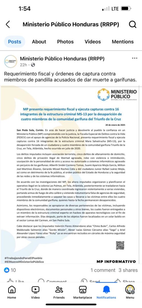 Dicha publicación –misma que fue eliminada— tomo por sorpresa a la comunidad garífuna quienes han exigido el retorno con vida de los lideres garífunas.