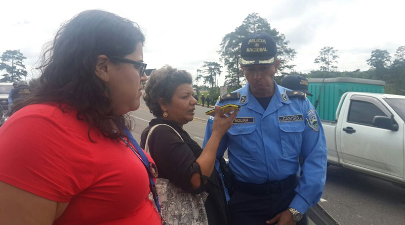 Tegucigalpa.- Las defensoras de derechos humanos: Karla Lara, Sandra Maribel Sánchez, Eleana Borjas y el también defensor Pedro Landa fueron retenidos ilegalmente por COVI, y policías antimotines en el peaje de Zambrano.