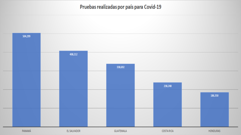 El informe difundido por integrantes del Observatorio revela que Panamá es el país que más pruebas ha realizado con 504 mil 299, El Salvador en segundo lugar con 408 mil 212, Guatemala en tercero con 338 mil 692, en cuarta posición Costa Rica con 238 mil 248 y Honduras en el último lugar con 186 mil 350. De los datos se excluye a Nicaragua porque no hay información
