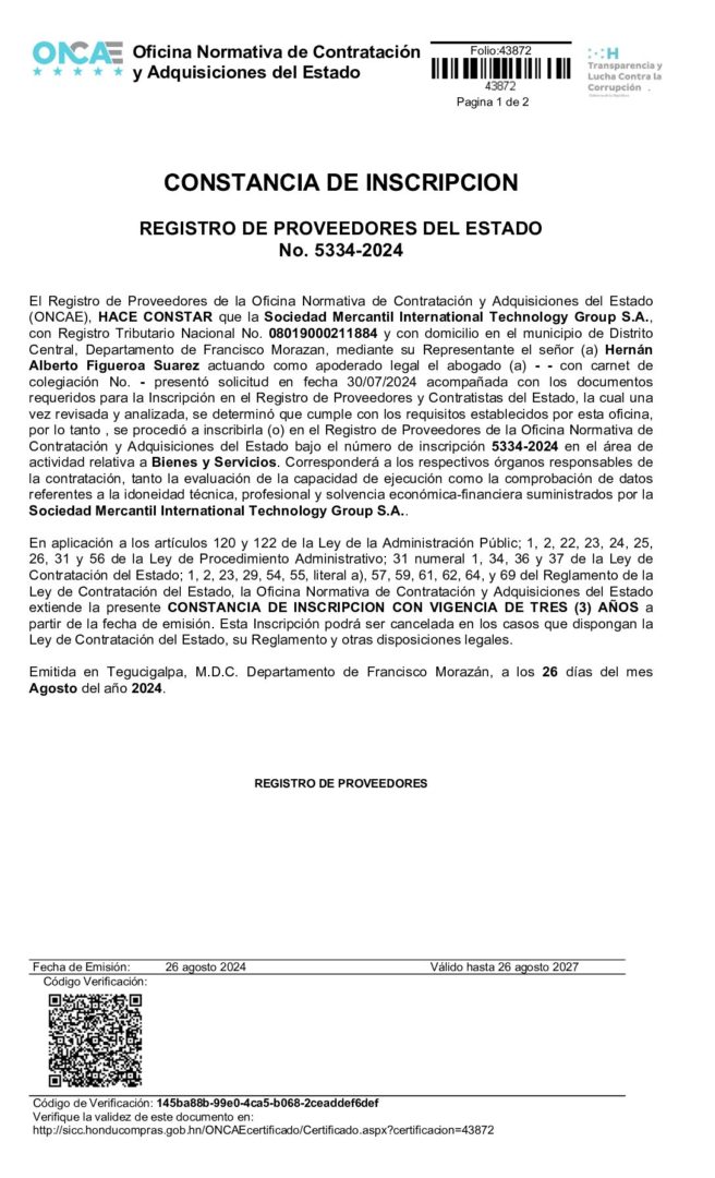 Criterio.hn descubrió que la empresa International Technology Group S.A. comparte directivos y accionistas con Sistemas Abiertos S.A. de C.V., implicada en casos de corrupción y sobrevaloración de contratos.