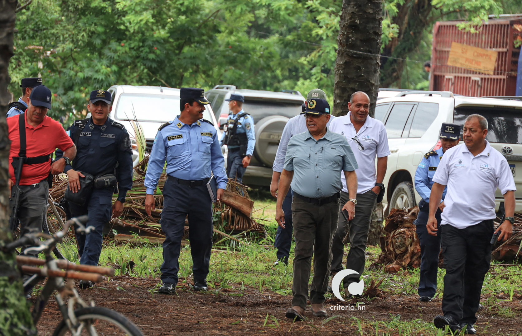 Ese mismo mes, en presencia de Criterio.hn, el ahora titular de la Secretaría de Derechos Humanos, Longino Becerra –entonces subsecretario de esa entidad–, visitó la zona junto al subsecretario de Seguridad, Hugo Suazo, y fiscal general adjunto del Ministerio Público, Marcio Cabañas Cadillo. Tanto Becerra como Suazo y Cabañas arribaron en vehículos de lujo y escoltados por civiles armados y agentes de la Policía Nacional.