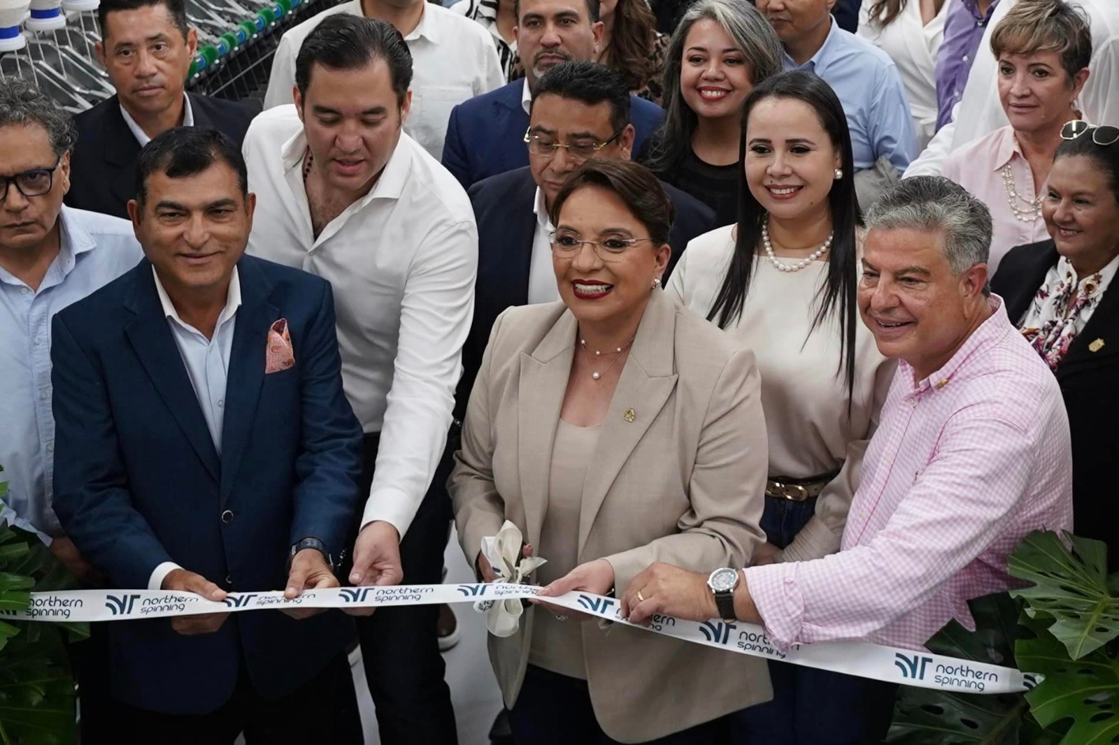 Pie de foto: La presidenta Xiomara Castro acompañó a Yusuf Amdani en la inauguración de la planta de hilandería Northern Spinning Mills en Cofradía, Cortés, en octubre de 2023. Fotografía: Casa Presidencial