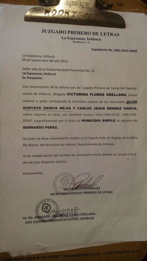 Caso de Homicidio de Bernardo Pérez – Expediente 1001-2015-00008