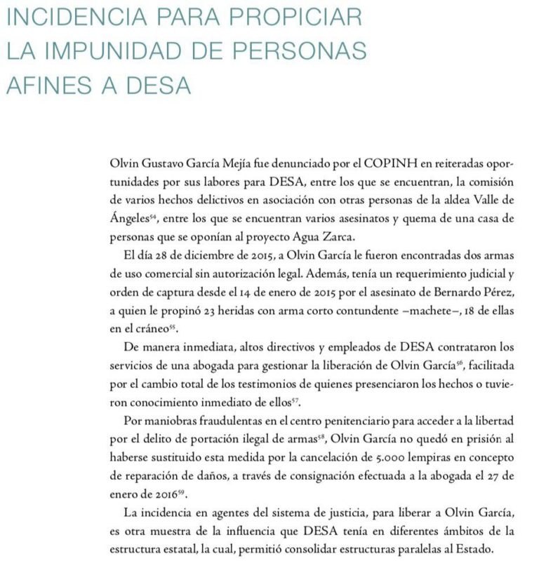 García Mejía fue liberado en tan solo 4 días por 2 delitos graves con el favor del sistema de justicia hondureño y el dinero de la empresa DESA.