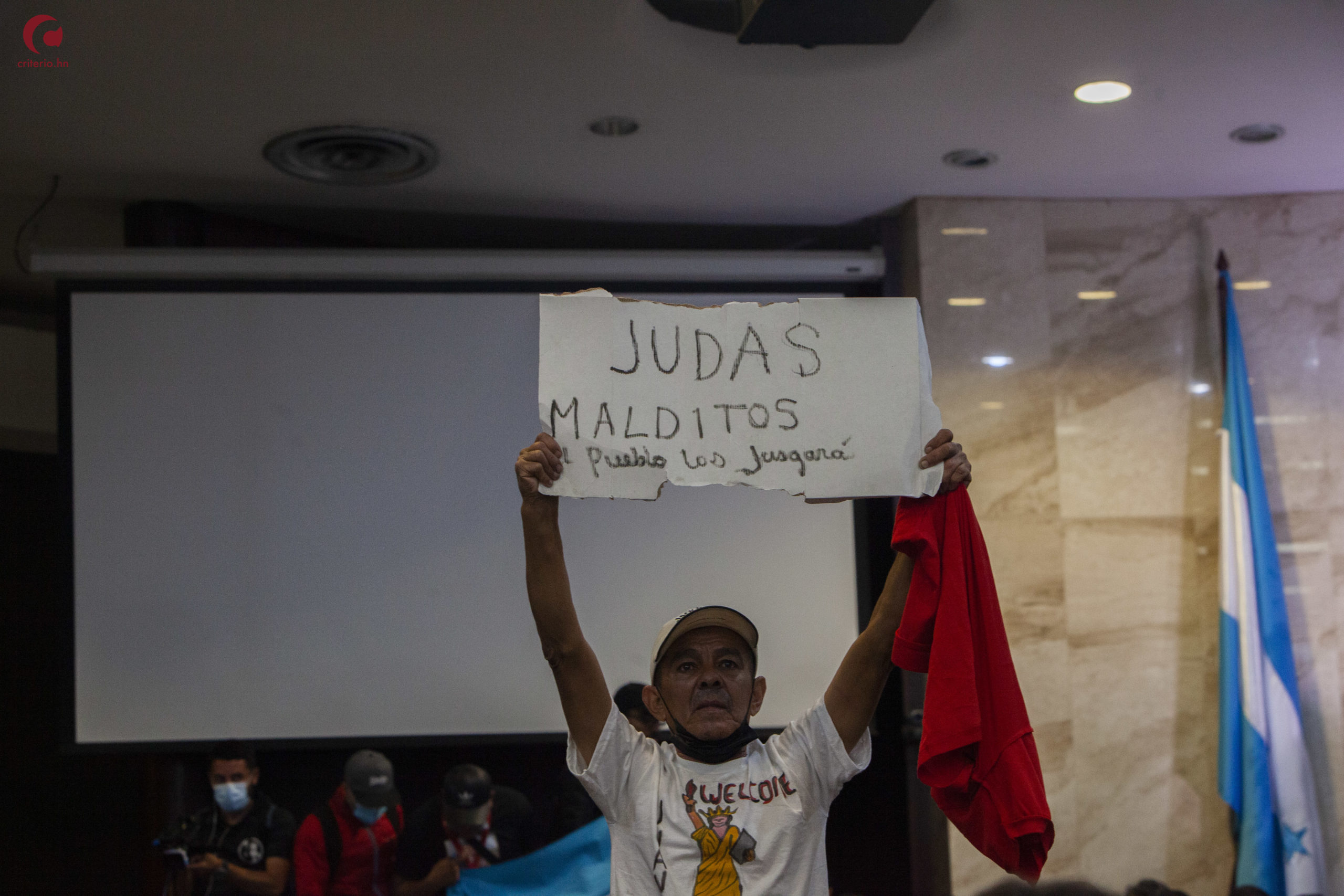 Simpatizantes del Partido Libre ingresaron al hemiciclo legislativo en rechazo a las acciones de los diputados disidentes y en respaldo de la posición partidaria respaldando el acuerdo entre el PSH y Libre.