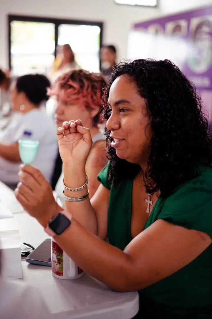 El segundo momento de la jornada fue la exploración práctica y educativa sobre los distintos productos de gestión menstrual, liderada por Ruth Mena.