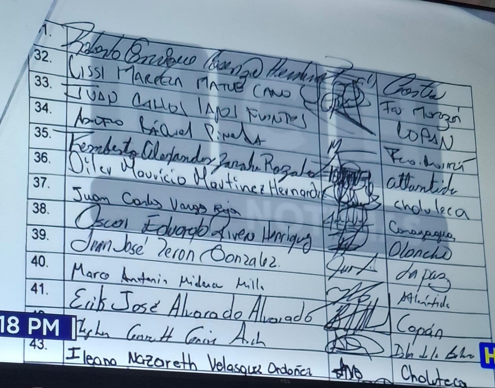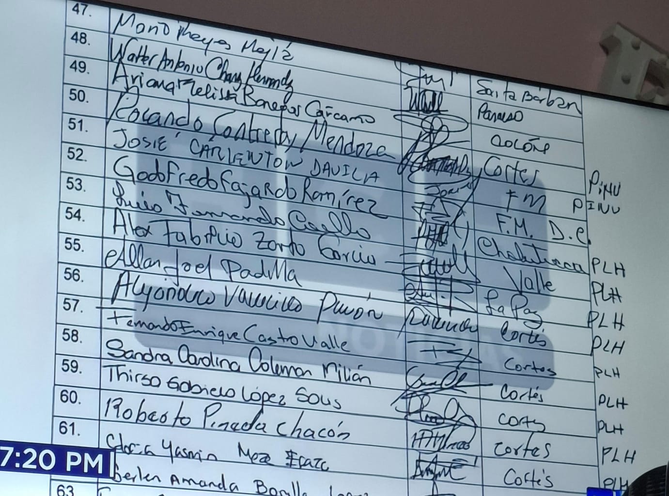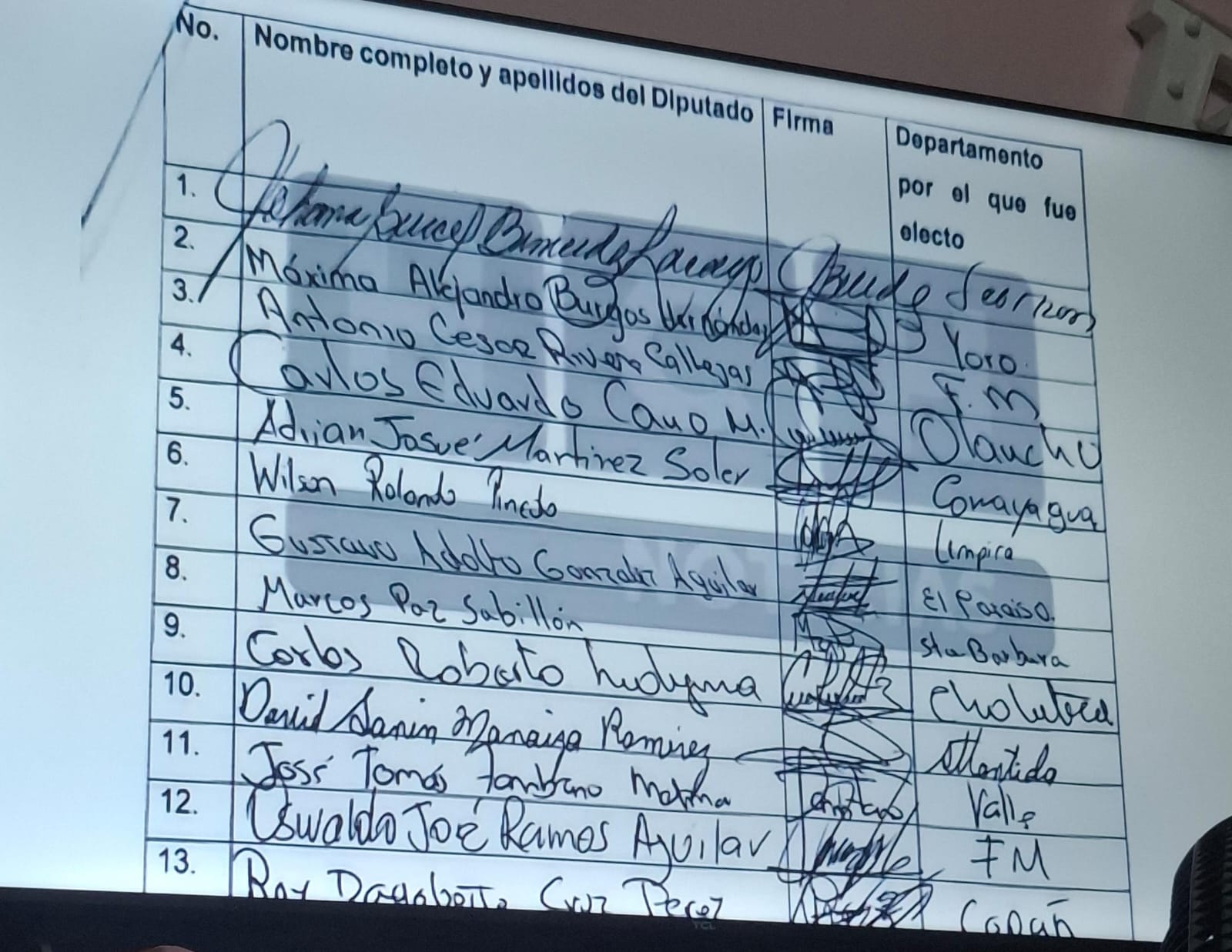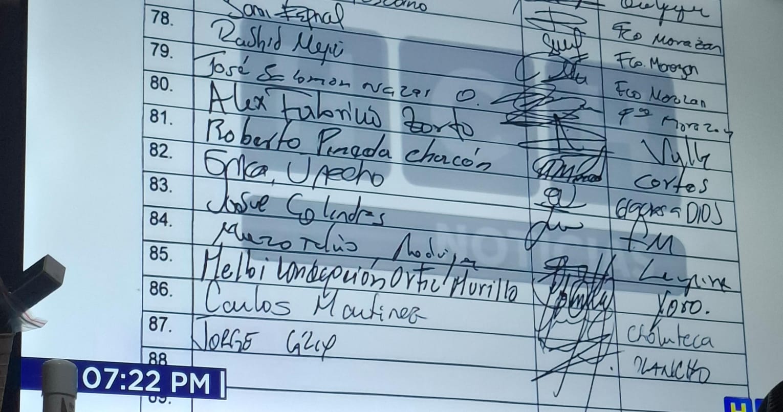 Esta es la lista de los 87 diputados que votaron por la Junta Directiva Provisonal. (Foto: cortesía HCH).