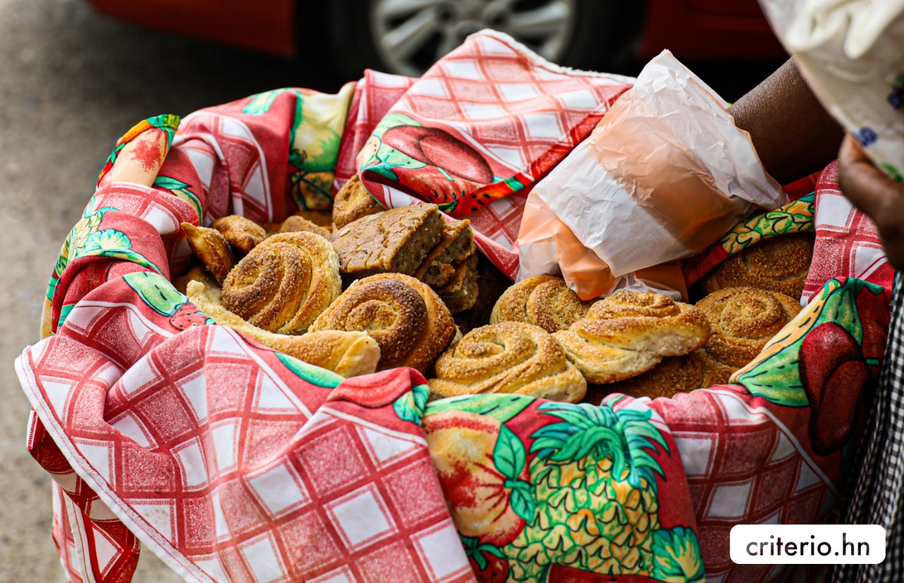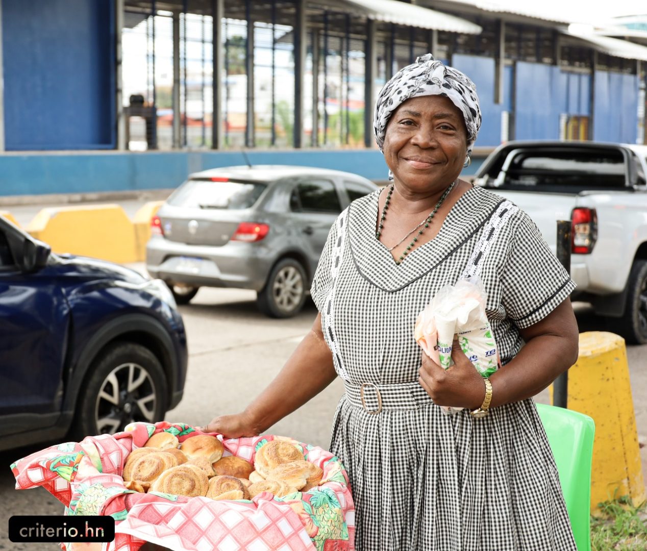 Tomasa vende pan enfrente de la Secretaría de Derechos Humanos en el bulevar Suyapa, parada obligatoria para comprar rico pan de coco.