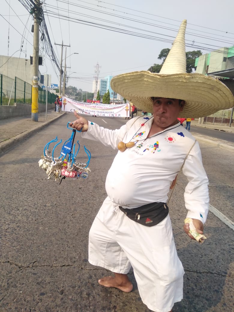 «Nunca he podido trabajar en un lugar con beneficios (…) no sé qué es estar sujeto a régimen o a un horario», dijo a Criterio.hn el hombre de 52 años de edad, mientras enseñaba los llaveros que vendía en la movilización, lo que asegura solo le ajusta para “mal vivir”.