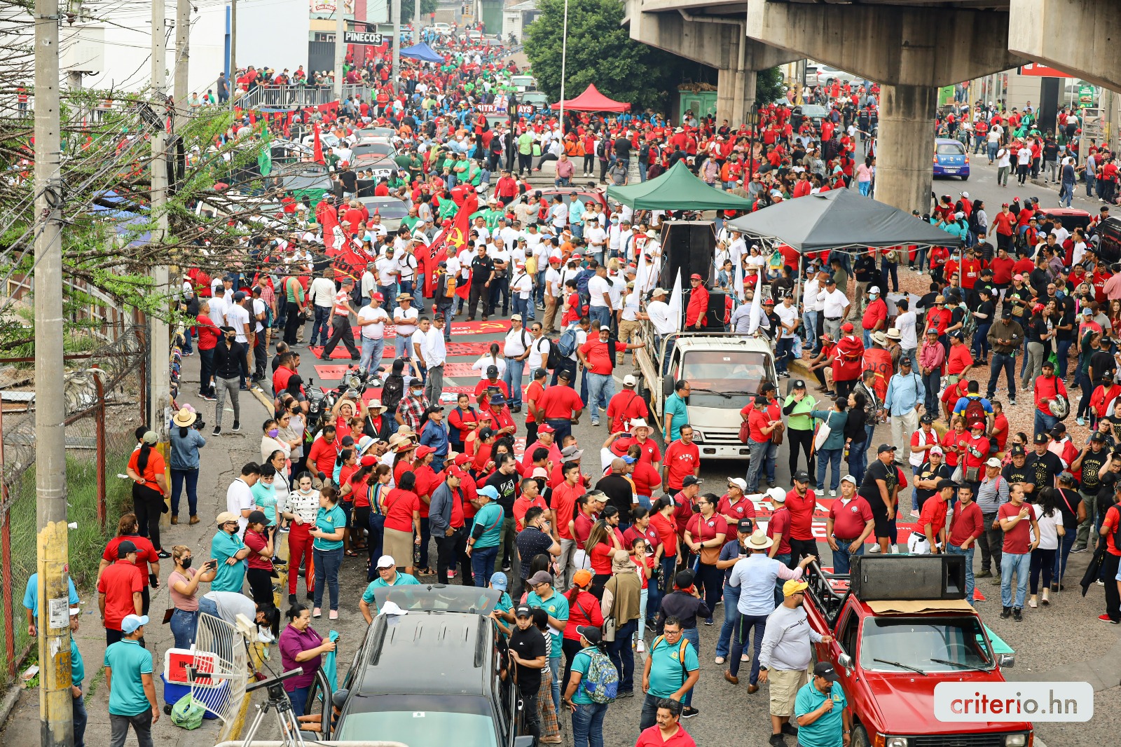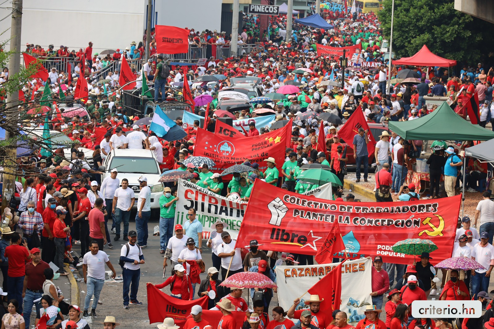 La movilización se tornó en una marea rojinegra, los colores insigne del oficialista Partido Libertad y Refundación (Libre) que estuvo representado por su coordinador, asesor presidencial y expresidente de Honduras, Manuel Zelaya Rosales, quien le puso el broche de oro a la actividad en la concha acústica del Parque Central de la capital hondureña, donde los sindicalistas le hicieron entrega de un manifiesto dirigido a la presidenta Castro.
