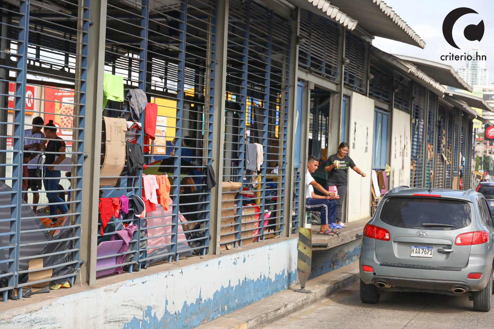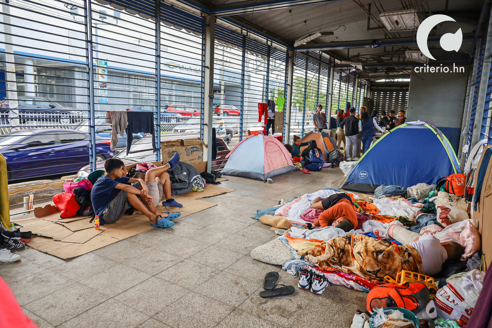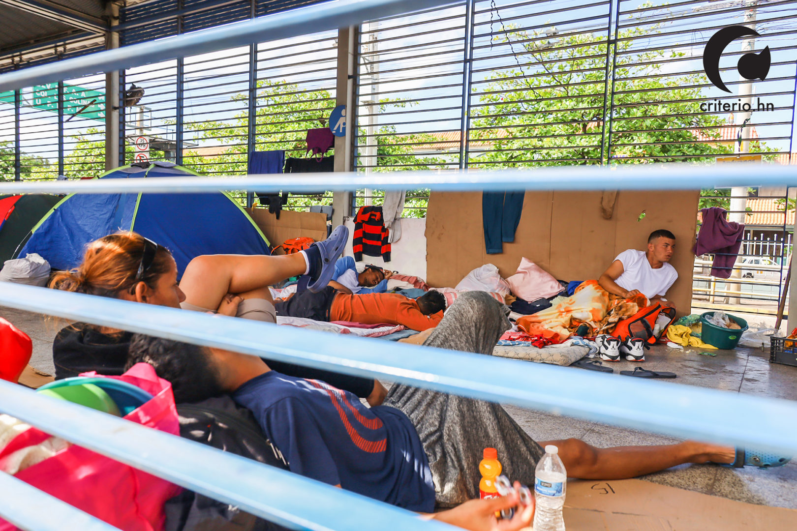 Franyeli García, contó a Criterio.hn que las noches en el trans 450 son frías, debido a la infraestructura de la estación, que consta de barrotes horizontales. Para palear el viento frio, han colgado plásticos, sabanas y algunos cartones. En el día, los barrotes funcionan de tendederos de ropa.
