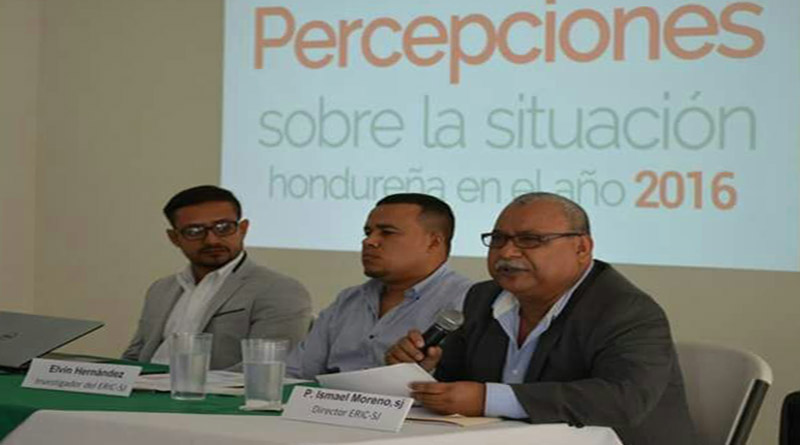 Tegucigalpa.- El Equipo de Reflexión Investigación y Comunicación (ERIC), Compañía de Jesús, presentó este día los resultados del sondeo de opinión pública enfocado en el tercer año de gobierno de Juan Hernández, dando como resultado que el 50% de la población desaprueba su gestión.