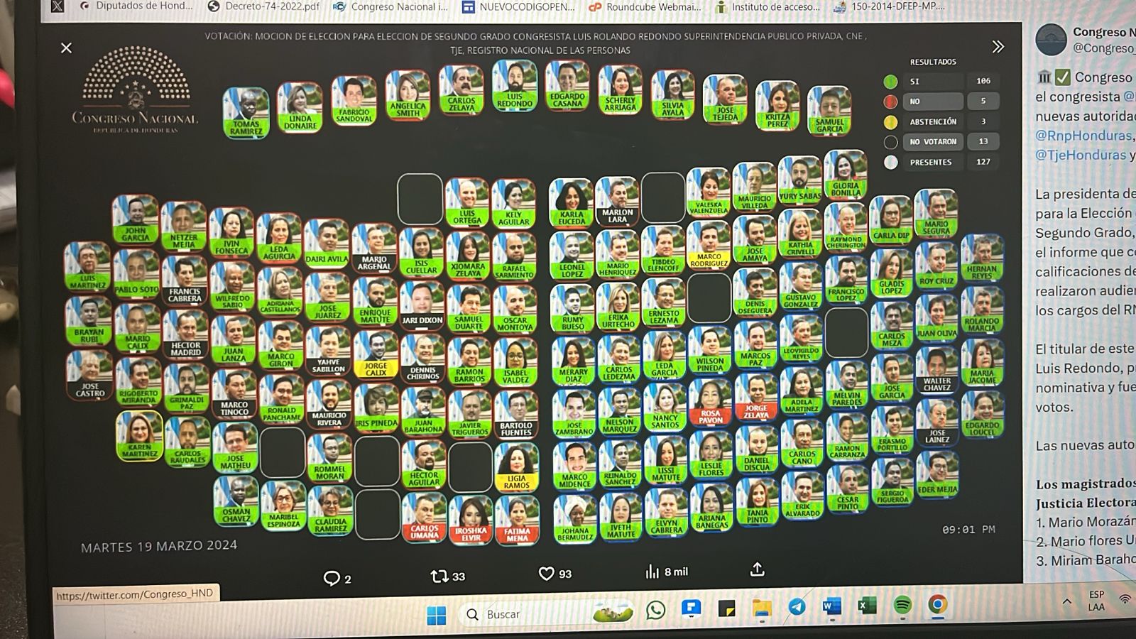 Esta elección de segundo grado no fue diferente a la elección de los magistrados de la Corte Suprema de Justicia (CSJ), de los magistrados del Tribunal Superior de Cuentas (TSC), de los fiscales del Ministerio Público, de los comisionados del Instituto de Acceso a la Información Pública (IAIP) y de la Unidad de Política Limpia.