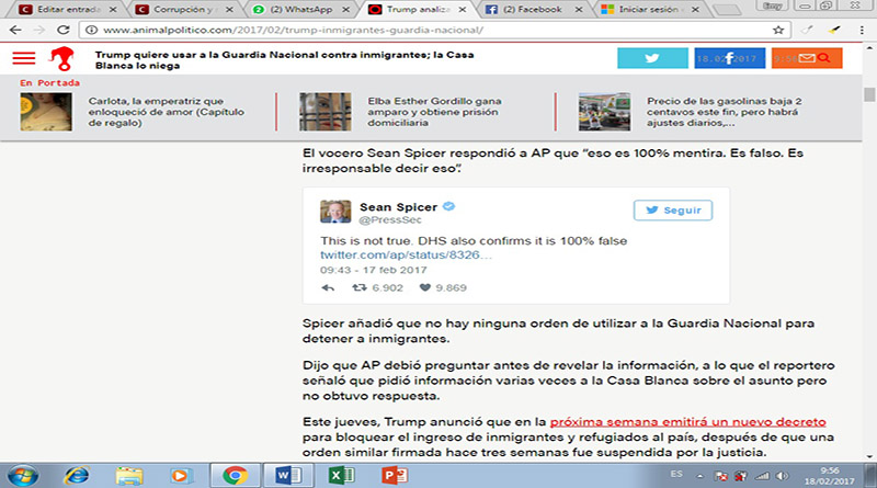 Spicer añadió que no hay ninguna orden de utilizar a la Guardia Nacional para detener a inmigrantes.