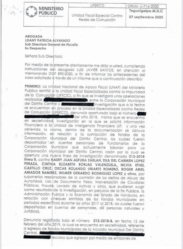 Tegucigalpa, Honduras.- La Unidad Fiscal Especializada Contra Redes de Corrupción (UFERCO) informó que ha abierto una línea de investigación en contra del alcalde nacionalista y precandidato presidencial, Nasry Asfura.