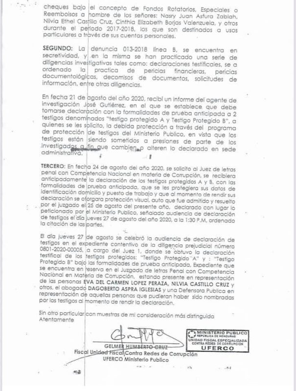 “Uno no escucha, por ejemplo, al fiscal general Óscar Fernando Chinchilla, elevando su voz de protesta contra estas situaciones (actos de corrupción como el caso Invest-H). Ya la sociedad no se siente respaldada en la voz del Fiscal General. Las voces de la población se enfocan más en Luis Javier Santos, que es el director de la UFERCO y pareciera reclamarle más a él que al propio Director de Fiscales o al propio Fiscal General que es el principal responsable. Sin embargo, la UFERCO no puede llevar los casos que la sociedad identifica como escandalosos actos de corrupción, y si llega a identificar una red de corrupción tampoco puede hacer nada, y no lo puede hacer en tanto el Director de Fiscales no le asigne un caso”, lamenta Menjívar.