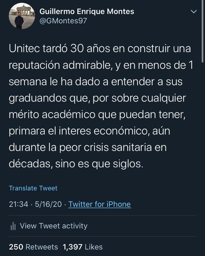 Finalmente señaló que por primera vez en la historia de Unitec, los graduandos se han unido para reclamar que les den un desglose de los gastos de graduación.