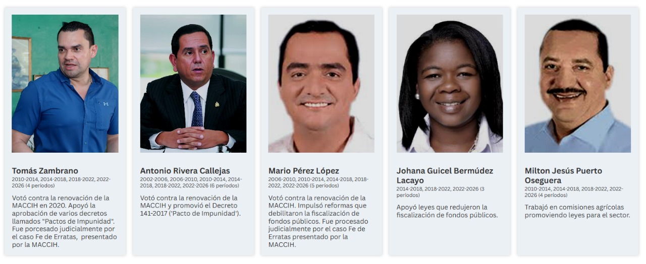 Tras el análisis de los registros legislativos, Criterio.hn expone a un grupo de diputados que, pese a su prolongada trayectoria en el Congreso Nacional, han respaldado decretos que favorecen la impunidad o han obstaculizado iniciativas clave en la lucha contra la corrupción. Aun así, buscan prolongar su permanencia en el poder en las próximas elecciones, apelando estrategias que diluyen su historial legislativo ante una ciudadanía que enfrenta un panorama electoral dominado por las tres principales fuerzas políticas que definirán el rumbo del país en el período 2026-2030.
