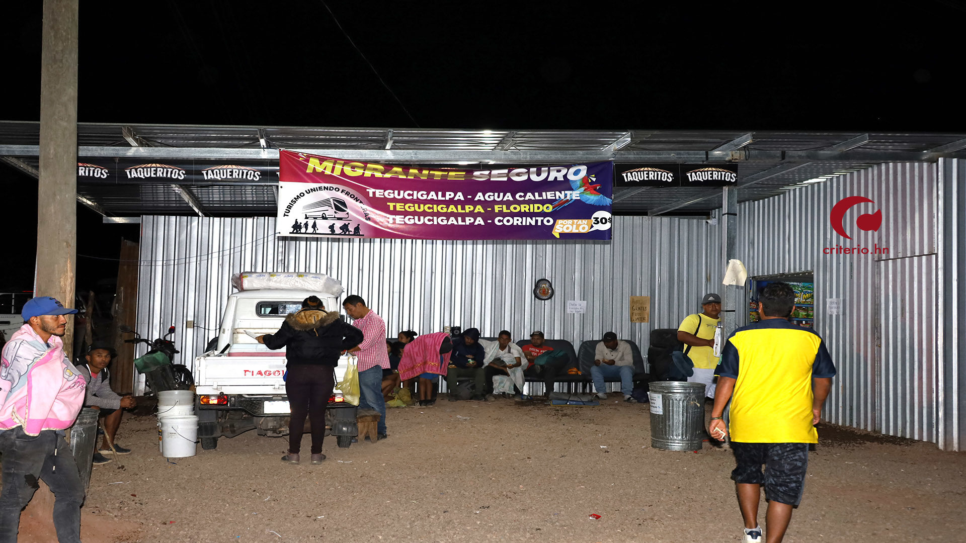 en la improvisada terminal del migrante en Tatumbla