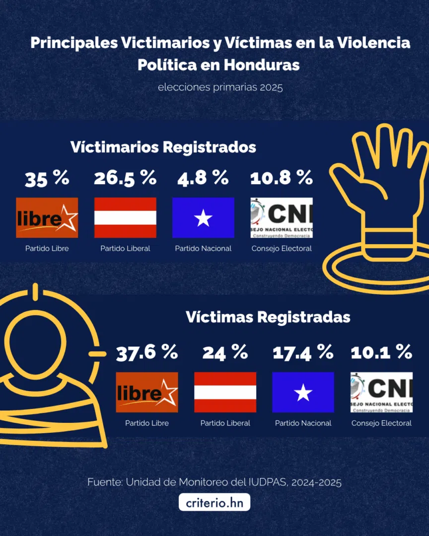 Un punto central del análisis de Lester Ramírez es la compleja posición del Partido Libertad y Refundación (Libre), que se perfila como el principal protagonista de la violencia política en el país. Curiosamente, Libre no solo es el partido que más ha protagonizado actos de agresión, sino que también es la principal víctima de esta conflictividad.