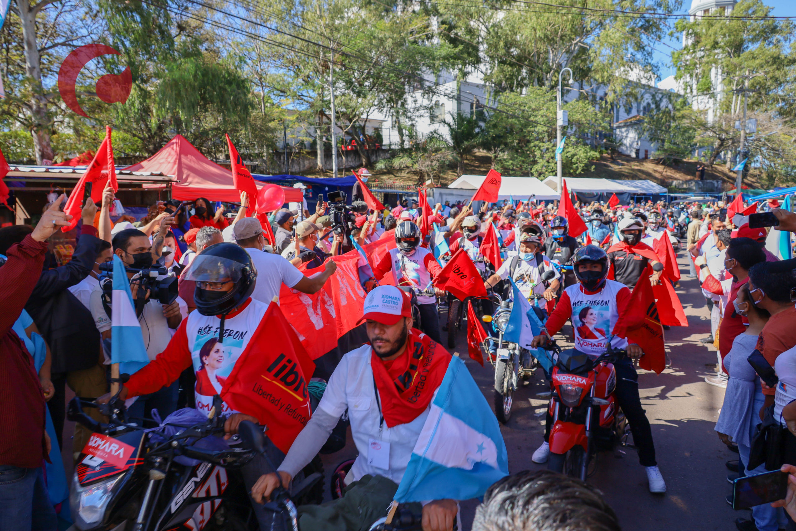 Luego de unos minutos, Castro salió de la Ermita, subió en la paila de un Jeep blanco, decorado con banderas de Honduras azul turquesa, junto a su esposo Manuel “Mel” Zelaya, para saludar a los presentes. De esta forma, una caravana de personas los siguió por el bulevar Suyapa hasta el Estadio Nacional Tegucigalpa, inaugurado el 15 de marzo de 1948, por el dictador Tiburcio Carías Andino.