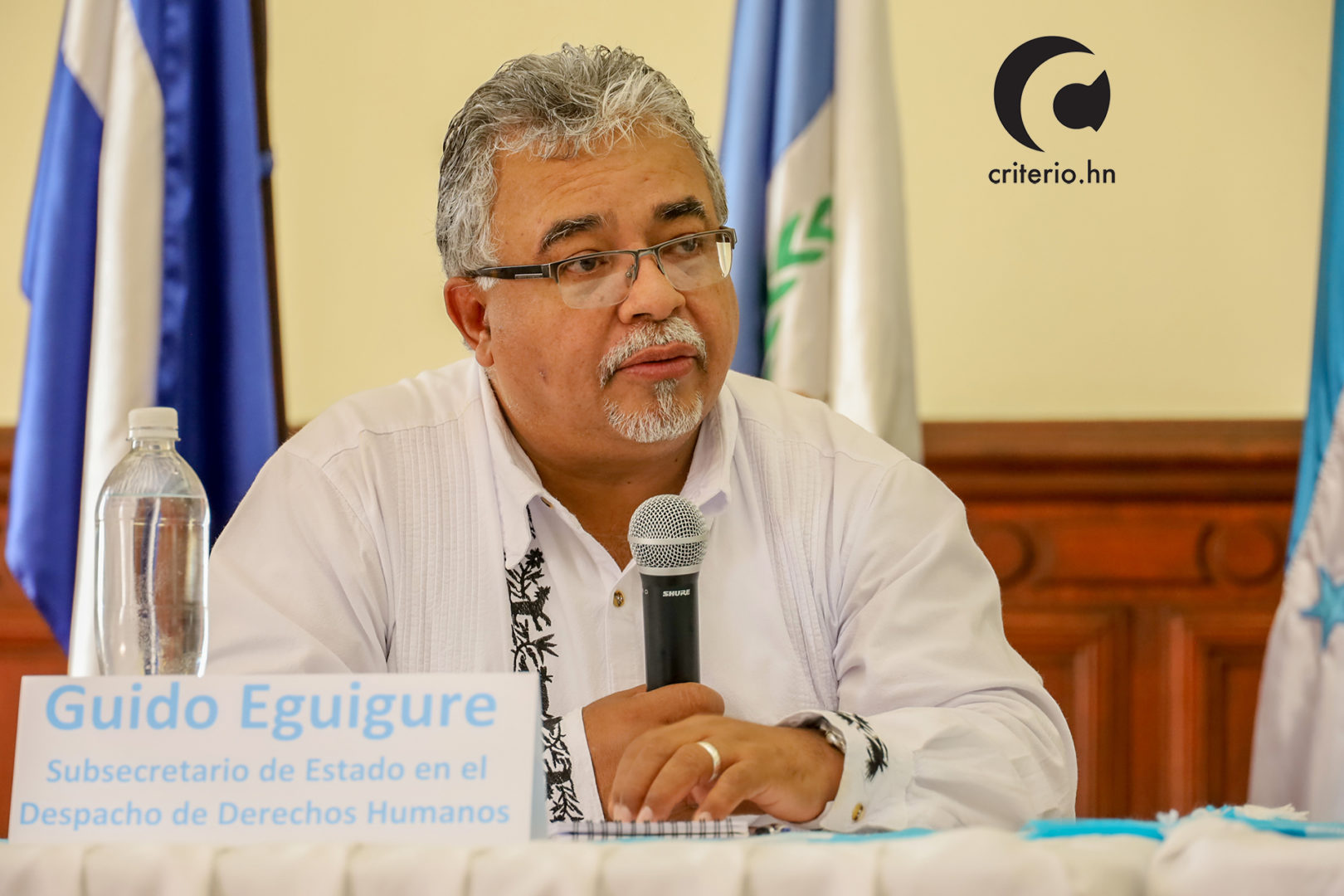 El subsecretario de Derechos Humanos, Guido Eguigure, inició su intervención mencionando las demandas internacionales que ha recibido el Estado de Honduras por parte de los inversores de las ZEDE. Ejemplificó que los modelos de operación de estas son similares a los modelos extractivos.